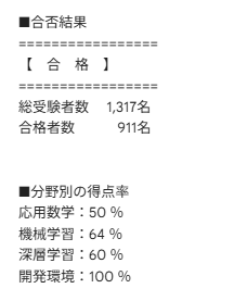 出題数の多い機械学習や深層学習でどれだけ正解率を上げられるかが重要になります。
